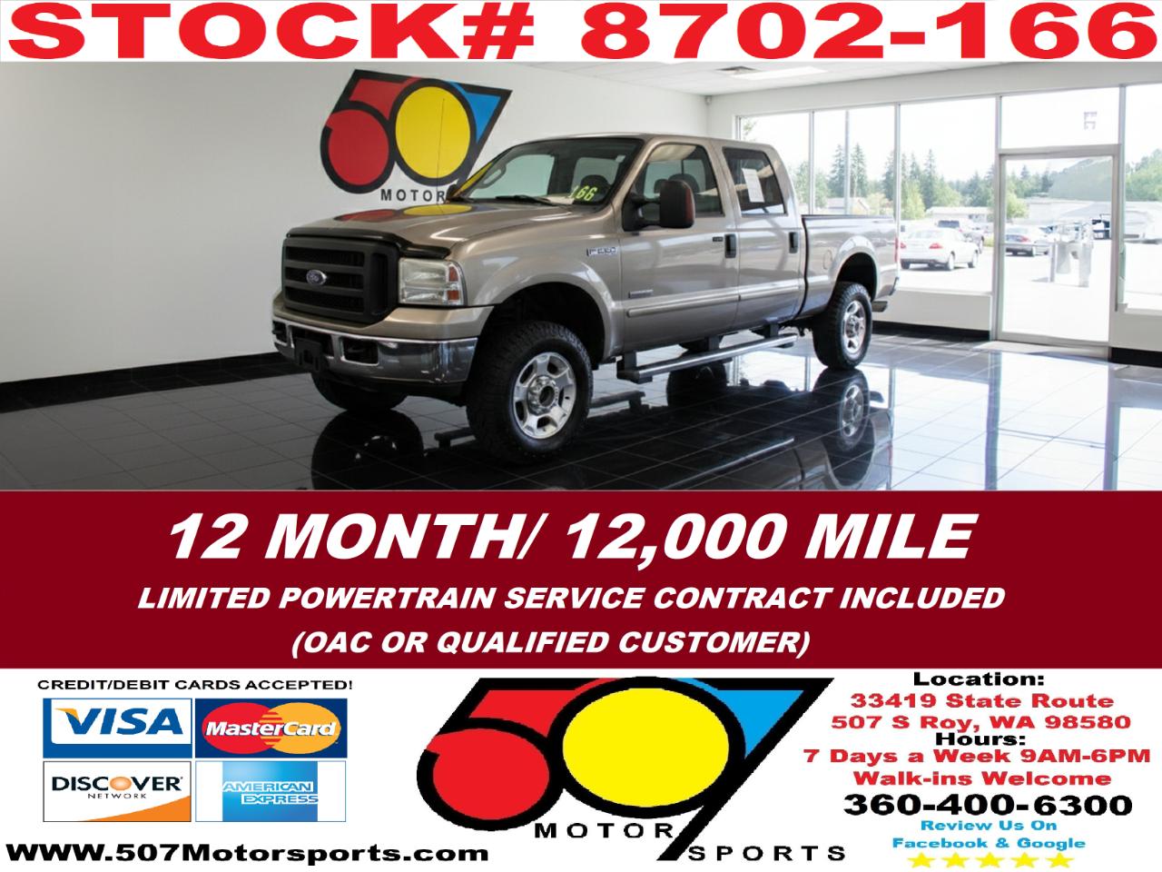 507 MOTORSPORTS makes no express nor implied warranty claims on this vehicle to include availability, condition and equipment as advertised. Any advertised pricing excludes tax, title, license and a negotiable dealer documentary service fee of up to $200 may be added to the sale price or capitalized cost. It is the sole responsibility of consumer to verify the existence of, title status via a history report (available upon request from 507 Motorsports), condition, equipment, pricing and discounts as advertised. This ad supersedes any and all ads before this date. Nothing contained herein is binding on either party. Please direct any and all questions of said policy to ATTN: GSM at 507 MOTORSPORTS, Roy, WA 98580 360-400-6300.