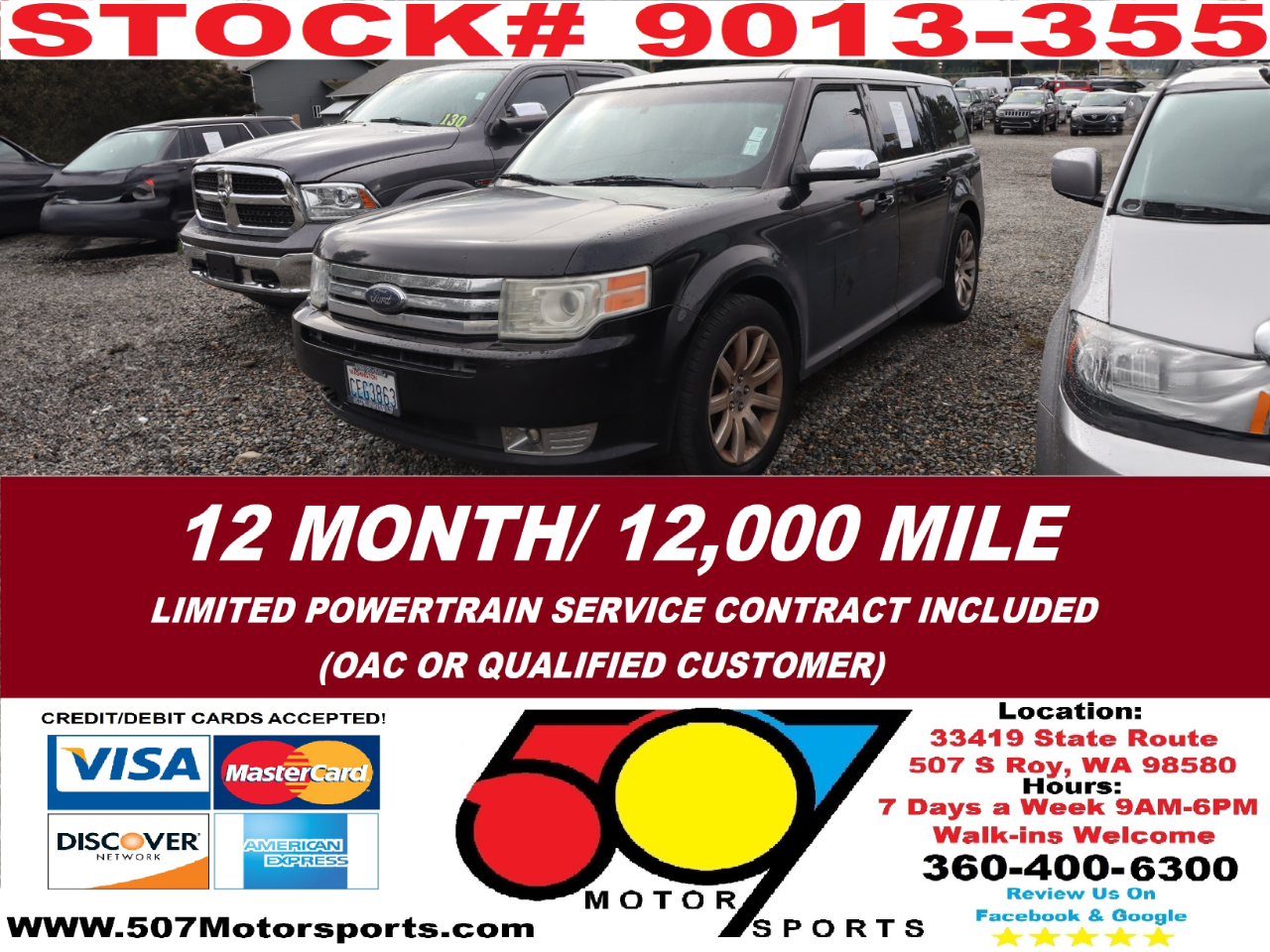 507 MOTORSPORTS makes no express nor implied warranty claims on this vehicle to include availability, condition and equipment as advertised. Any advertised pricing excludes tax, title, license and a negotiable dealer documentary service fee of up to $200 may be added to the sale price or capitalized cost. It is the sole responsibility of consumer to verify the existence of, title status via a history report (available upon request from 507 Motorsports), condition, equipment, pricing and discounts as advertised. This ad supersedes any and all ads before this date. Nothing contained herein is binding on either party. Please direct any and all questions of said policy to ATTN: GSM at 507 MOTORSPORTS, Roy, WA 98580 360-400-6300.