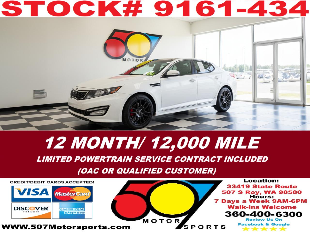 507 MOTORSPORTS makes no express nor implied warranty claims on this vehicle to include availability, condition and equipment as advertised. Any advertised pricing excludes tax, title, license and a negotiable dealer documentary service fee of up to $200 may be added to the sale price or capitalized cost. It is the sole responsibility of consumer to verify the existence of, title status via a history report (available upon request from 507 Motorsports), condition, equipment, pricing and discounts as advertised. This ad supersedes any and all ads before this date. Nothing contained herein is binding on either party. Please direct any and all questions of said policy to ATTN: GSM at 507 MOTORSPORTS, Roy, WA 98580 360-400-6300.