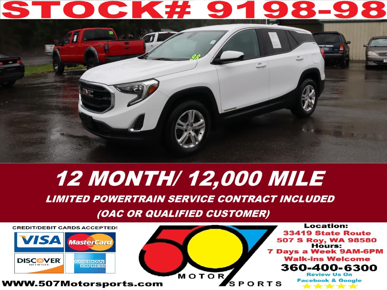 507 MOTORSPORTS makes no express nor implied warranty claims on this vehicle to include availability, condition and equipment as advertised. Any advertised pricing excludes tax, title, license and a negotiable dealer documentary service fee of up to $200 may be added to the sale price or capitalized cost. It is the sole responsibility of consumer to verify the existence of, title status via a history report (available upon request from 507 Motorsports), condition, equipment, pricing and discounts as advertised. This ad supersedes any and all ads before this date. Nothing contained herein is binding on either party. Please direct any and all questions of said policy to ATTN: GSM at 507 MOTORSPORTS, Roy, WA 98580 360-400-6300.