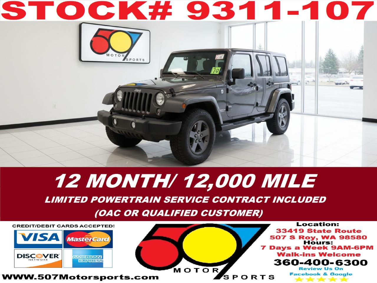 507 MOTORSPORTS makes no express nor implied warranty claims on this vehicle to include availability, condition and equipment as advertised. Any advertised pricing excludes tax, title, license and a negotiable dealer documentary service fee of up to $200 may be added to the sale price or capitalized cost. It is the sole responsibility of consumer to verify the existence of, title status via a history report (available upon request from 507 Motorsports), condition, equipment, pricing and discounts as advertised. This ad supersedes any and all ads before this date. Nothing contained herein is binding on either party. Please direct any and all questions of said policy to ATTN: GSM at 507 MOTORSPORTS, Roy, WA 98580 360-400-6300.