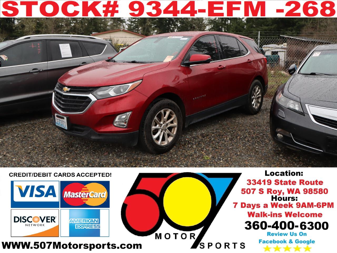 507 MOTORSPORTS makes no express nor implied warranty claims on this vehicle to include availability, condition and equipment as advertised. Any advertised pricing excludes tax, title, license and a negotiable dealer documentary service fee of up to $200 may be added to the sale price or capitalized cost. It is the sole responsibility of consumer to verify the existence of, title status via a history report (available upon request from 507 Motorsports), condition, equipment, pricing and discounts as advertised. This ad supersedes any and all ads before this date. Nothing contained herein is binding on either party. Please direct any and all questions of said policy to ATTN: GSM at 507 MOTORSPORTS, Roy, WA 98580 360-400-6300.