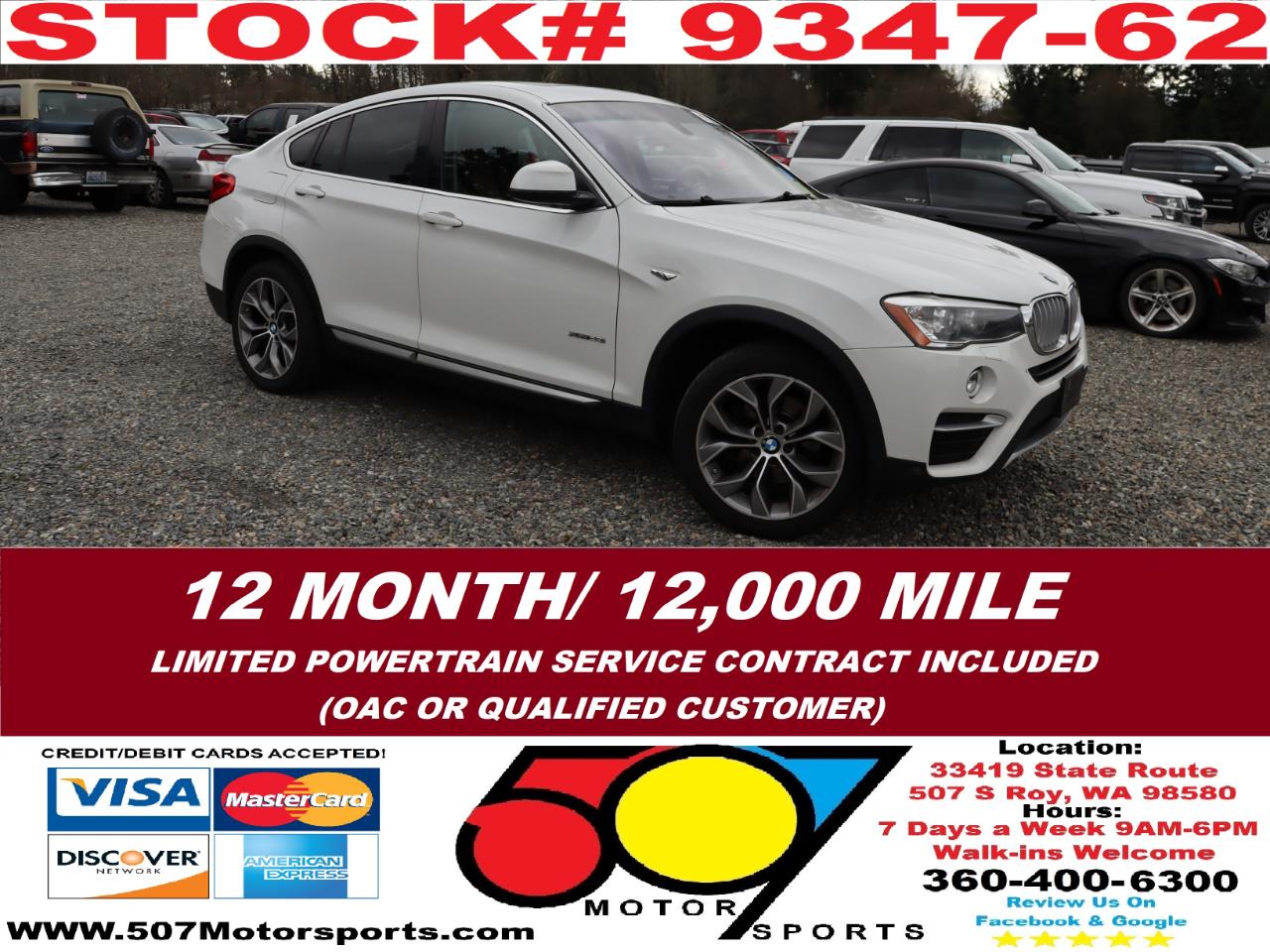 507 MOTORSPORTS makes no express nor implied warranty claims on this vehicle to include availability, condition and equipment as advertised. Any advertised pricing excludes tax, title, license and a negotiable dealer documentary service fee of up to $200 may be added to the sale price or capitalized cost. It is the sole responsibility of consumer to verify the existence of, title status via a history report (available upon request from 507 Motorsports), condition, equipment, pricing and discounts as advertised. This ad supersedes any and all ads before this date. Nothing contained herein is binding on either party. Please direct any and all questions of said policy to ATTN: GSM at 507 MOTORSPORTS, Roy, WA 98580 360-400-6300.
