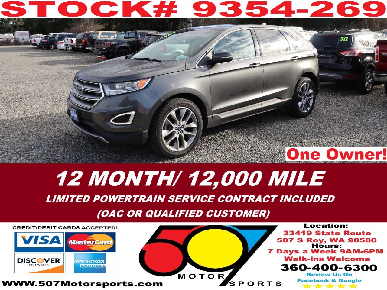 507 MOTORSPORTS makes no express nor implied warranty claims on this vehicle to include availability, condition and equipment as advertised. Any advertised pricing excludes tax, title, license and a negotiable dealer documentary service fee of up to $200 may be added to the sale price or capitalized cost. It is the sole responsibility of consumer to verify the existence of, title status via a history report (available upon request from 507 Motorsports), condition, equipment, pricing and discounts as advertised. This ad supersedes any and all ads before this date. Nothing contained herein is binding on either party. Please direct any and all questions of said policy to ATTN: GSM at 507 MOTORSPORTS, Roy, WA 98580 360-400-6300.