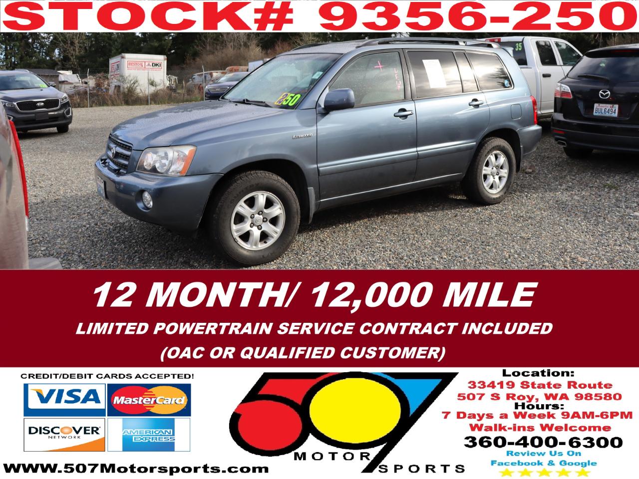 507 MOTORSPORTS makes no express nor implied warranty claims on this vehicle to include availability, condition and equipment as advertised. Any advertised pricing excludes tax, title, license and a negotiable dealer documentary service fee of up to $200 may be added to the sale price or capitalized cost. It is the sole responsibility of consumer to verify the existence of, title status via a history report (available upon request from 507 Motorsports), condition, equipment, pricing and discounts as advertised. This ad supersedes any and all ads before this date. Nothing contained herein is binding on either party. Please direct any and all questions of said policy to ATTN: GSM at 507 MOTORSPORTS, Roy, WA 98580 360-400-6300.