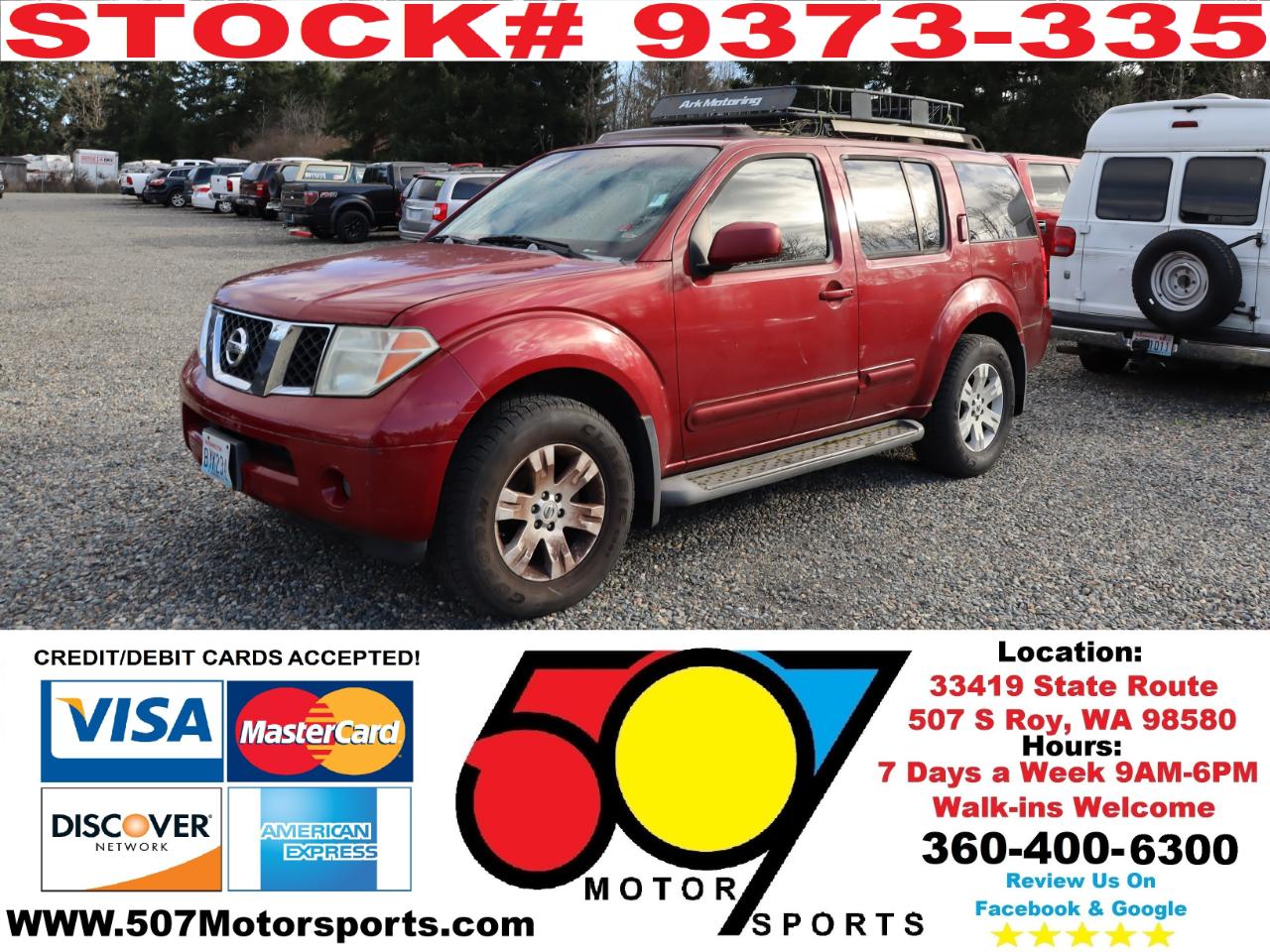 507 MOTORSPORTS makes no express nor implied warranty claims on this vehicle to include availability, condition and equipment as advertised. Any advertised pricing excludes tax, title, license and a negotiable dealer documentary service fee of up to $200 may be added to the sale price or capitalized cost. It is the sole responsibility of consumer to verify the existence of, title status via a history report (available upon request from 507 Motorsports), condition, equipment, pricing and discounts as advertised. This ad supersedes any and all ads before this date. Nothing contained herein is binding on either party. Please direct any and all questions of said policy to ATTN: GSM at 507 MOTORSPORTS, Roy, WA 98580 360-400-6300.