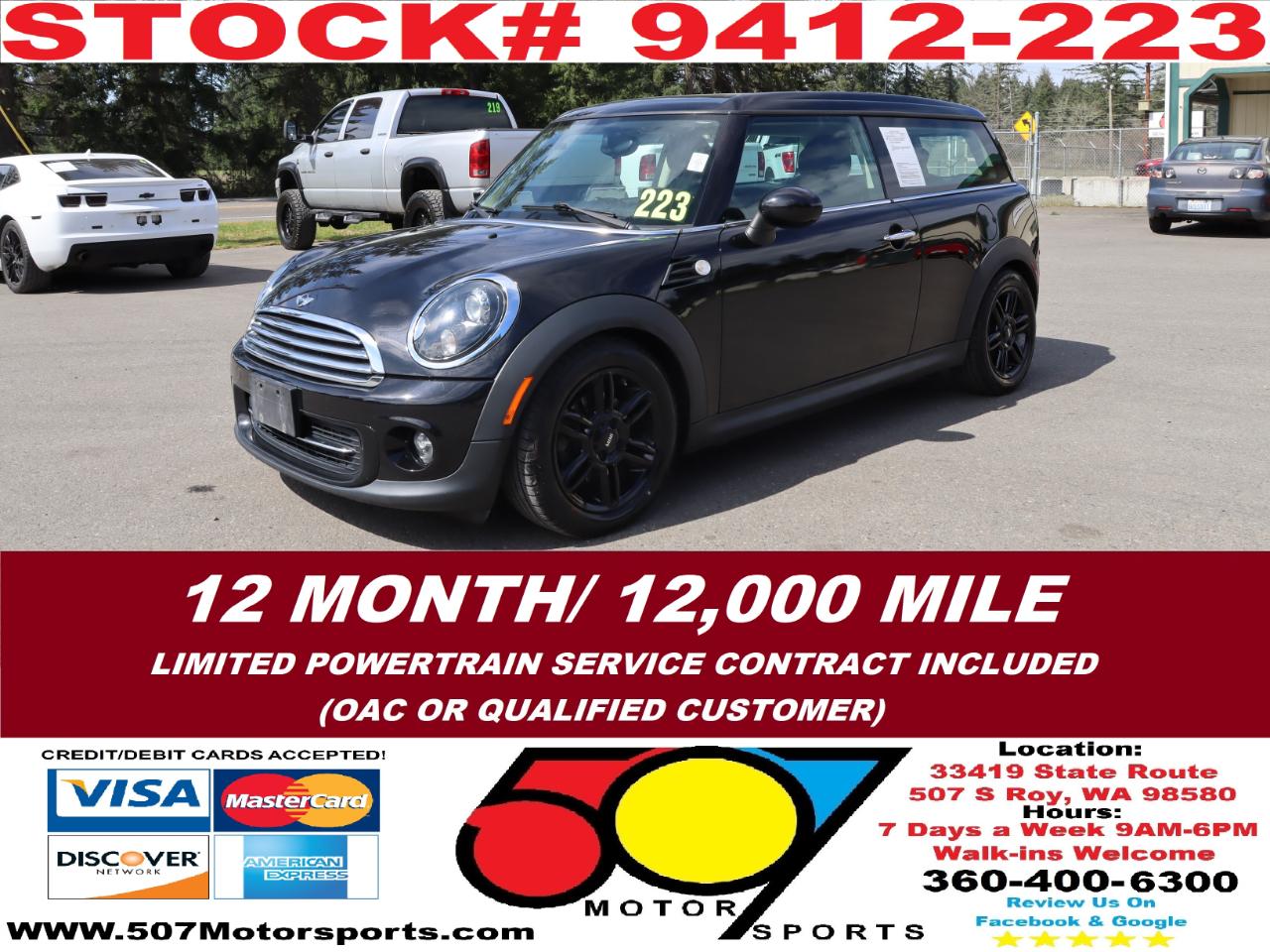 507 MOTORSPORTS makes no express nor implied warranty claims on this vehicle to include availability, condition and equipment as advertised. Any advertised pricing excludes tax, title, license and a negotiable dealer documentary service fee of up to $200 may be added to the sale price or capitalized cost. It is the sole responsibility of consumer to verify the existence of, title status via a history report (available upon request from 507 Motorsports), condition, equipment, pricing and discounts as advertised. This ad supersedes any and all ads before this date. Nothing contained herein is binding on either party. Please direct any and all questions of said policy to ATTN: GSM at 507 MOTORSPORTS, Roy, WA 98580 360-400-6300.