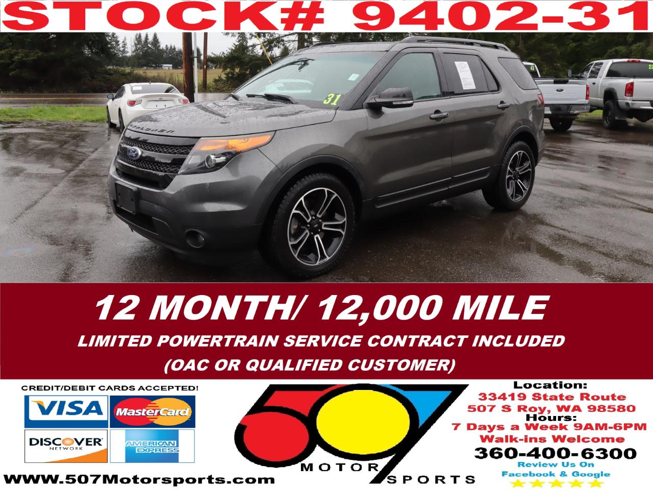 507 MOTORSPORTS makes no express nor implied warranty claims on this vehicle to include availability, condition and equipment as advertised. Any advertised pricing excludes tax, title, license and a negotiable dealer documentary service fee of up to $200 may be added to the sale price or capitalized cost. It is the sole responsibility of consumer to verify the existence of, title status via a history report (available upon request from 507 Motorsports), condition, equipment, pricing and discounts as advertised. This ad supersedes any and all ads before this date. Nothing contained herein is binding on either party. Please direct any and all questions of said policy to ATTN: GSM at 507 MOTORSPORTS, Roy, WA 98580 360-400-6300.